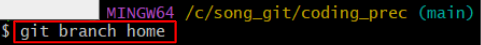 <branch-name>은 새로 생성할 브랜치의 이름입니다. 저는 브랜치명을 home으로 설정해주었습니다.