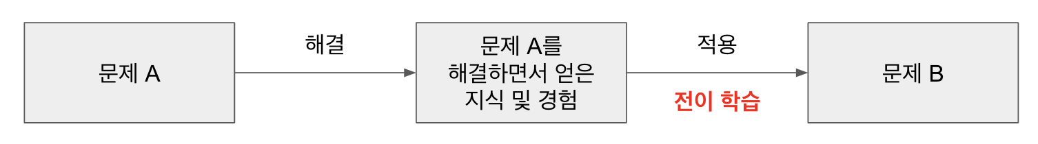 하나의 문제를 해결하기 위해 학습된 모델의 지식을 다른 문제를 해결하는데 활용하는 기법입니다.
