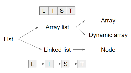 List로 분류되는 자료구조는 Python에서 Array list로 구현할 수 있으며, Linked list로도 구현할 수 있습니다.