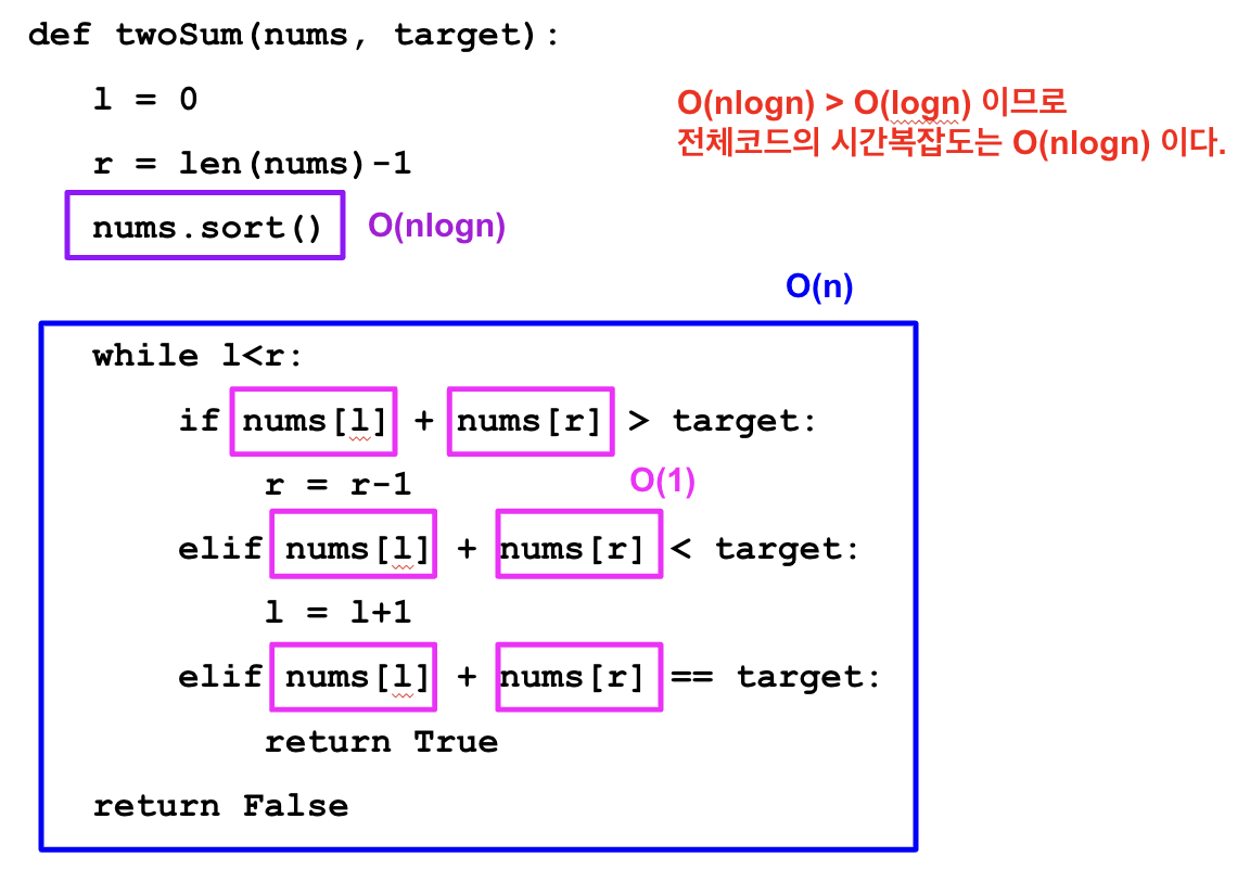 2. Sort & Two Pointer : 말 그대로 두 개의 pointer를 가지고 왔다갔다 함. 보통 Two pointer는 정렬이 된 상황에서 사용함