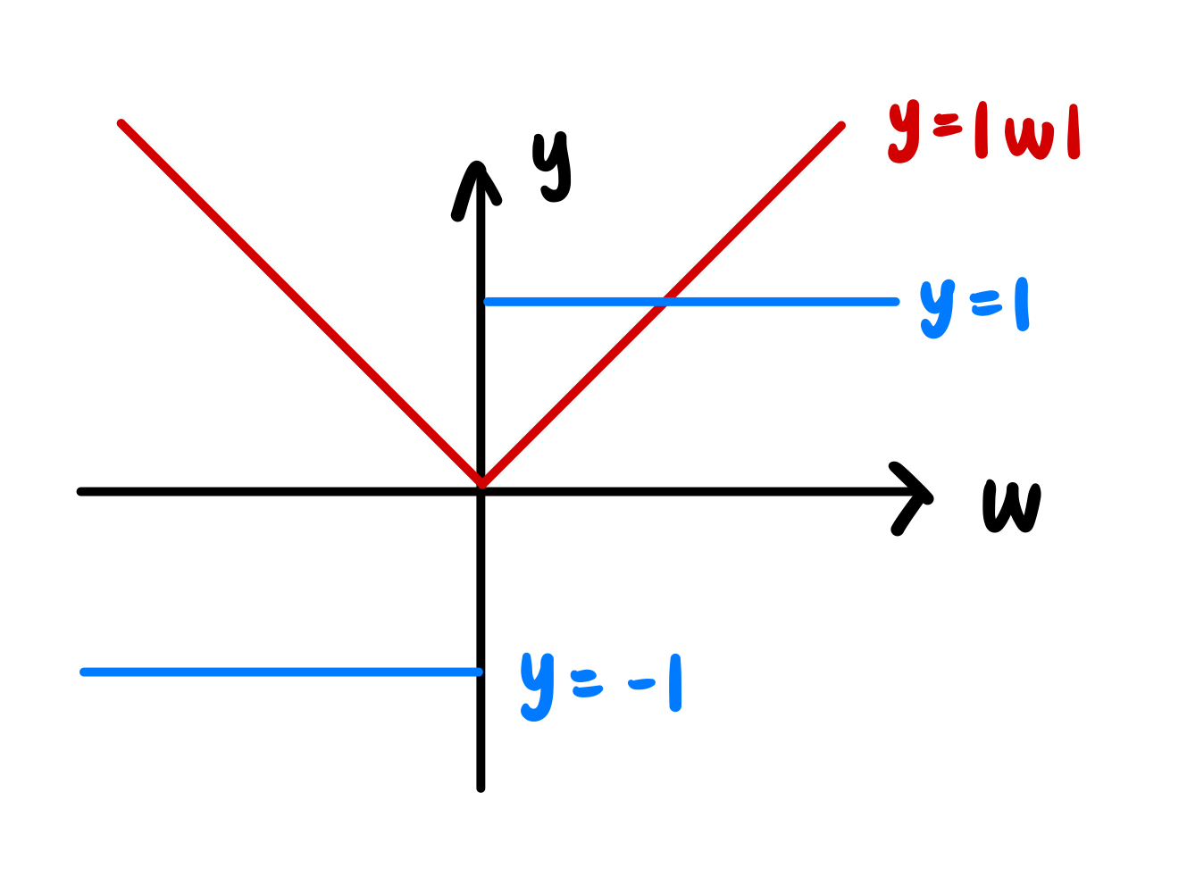 위 이미지는 \( y = |w| \) 함수의 그래프를 나타냅니다.