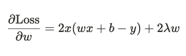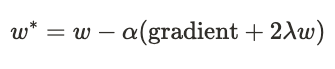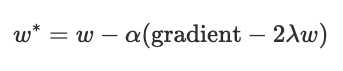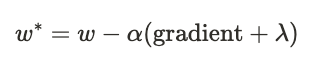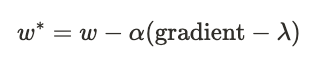 식 \(w - \alpha (\text {gradient} + \lambda)\)에서 \(\text {gradient}\)를 생략하면 식은 결국 \(w - (\lambda)\)로 간소화됩니다.