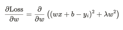2. 손실 함수에 L2 규제를 추가하여 모델의 가중치에 제약을 적용합니다.(n=1인 경우를 가정)