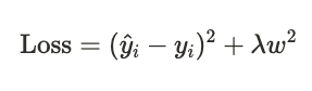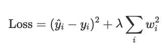 여기서 \(\lambda\)는 규제 강도를 조절하는 하이퍼파라미터, \(w_i\)는 모델의 각 가중치를 의미합니다.