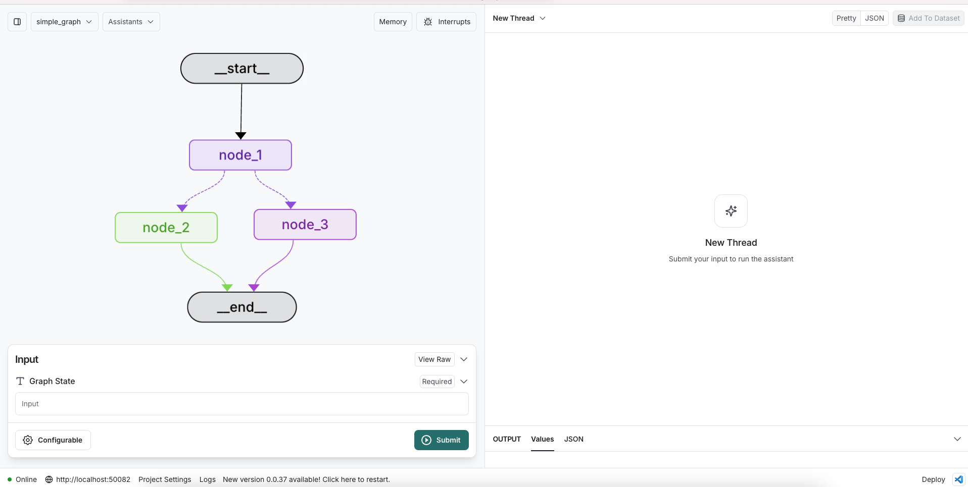 LangGraph Studio를 재시작했더니 드디어 정상적으로 로드 성공!