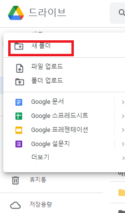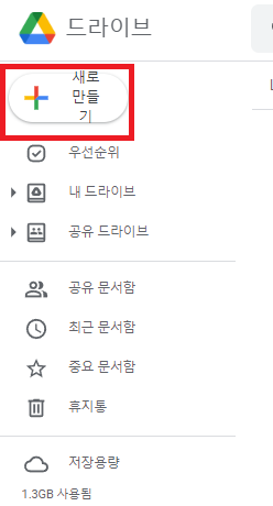 구글 드라이브에 접속 후 왼쪽 상단에 있는 새로 만들기 클릭