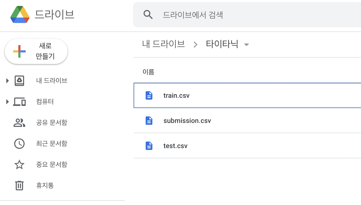 내 드라이브 안에 타이타닉이라는 폴더가 생성된 것을 확인할 수 있겠죠?!