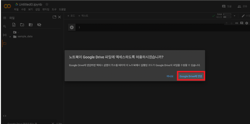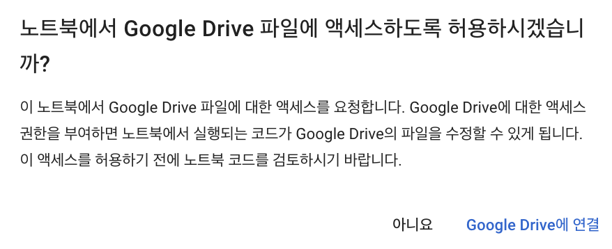 구글 드라이브와 코랩이 마운트가 되면 사진과 같이