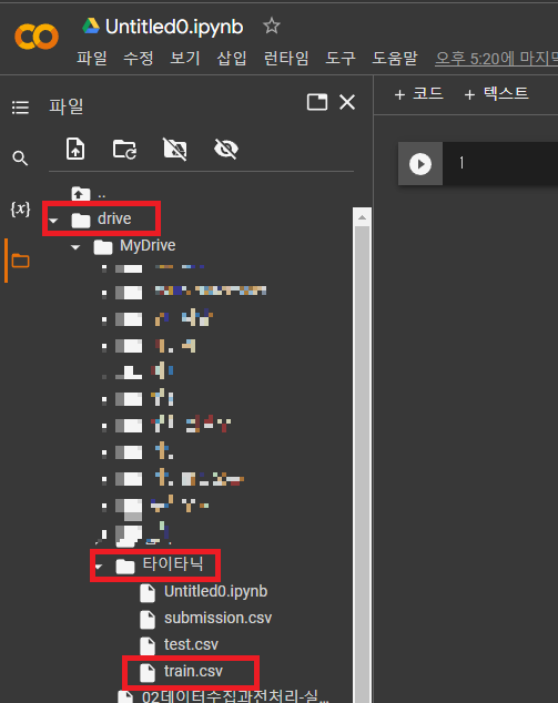 여기서 사용한 타이타닉 csv 파일을 구글 드라이브에 넣는 법은 이전 포스팅에 있습니다!