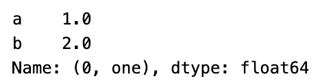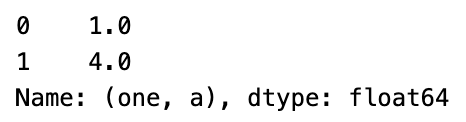 'one' 이면서 'a' 인덱스를 갖는 1.0, 4.0 가 출력되었습니다.