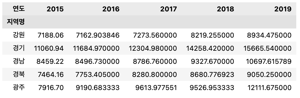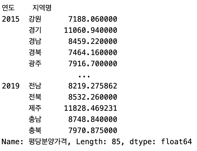 g = df_last.groupby(["연도", "지역명"])["평당분양가격"].mean()