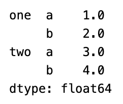 s1 데이터의 인덱스는 [('one', 'a'), ('one', 'b'), ('two', 'a'), ('two', 'b')]입니다.