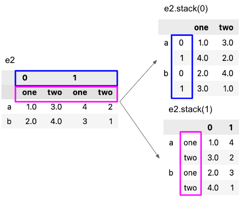 stack은 unstack과 반대이므로 unstack을 이해하면 stack도 어렵지 않게 이해가 될 것 같네요.