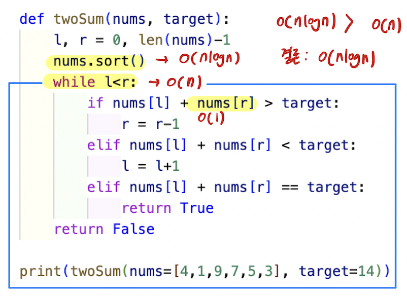 elif nums[l] + nums[r] < target: