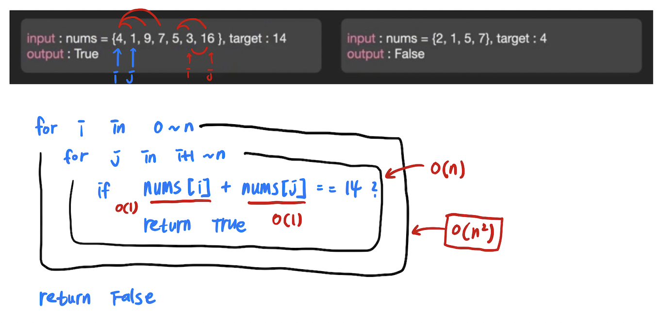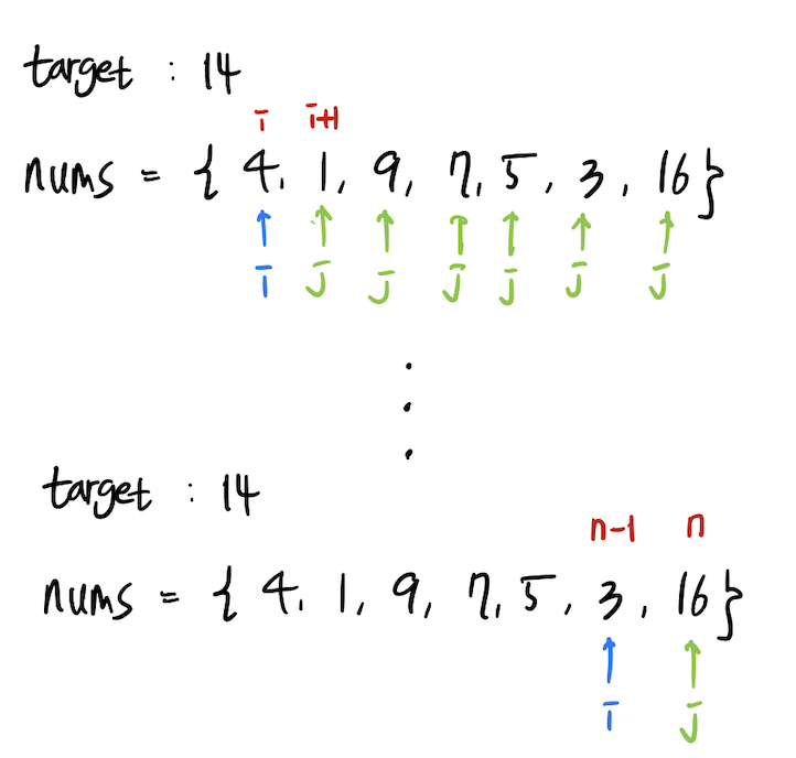 if nums[i] + nums[j] == target: